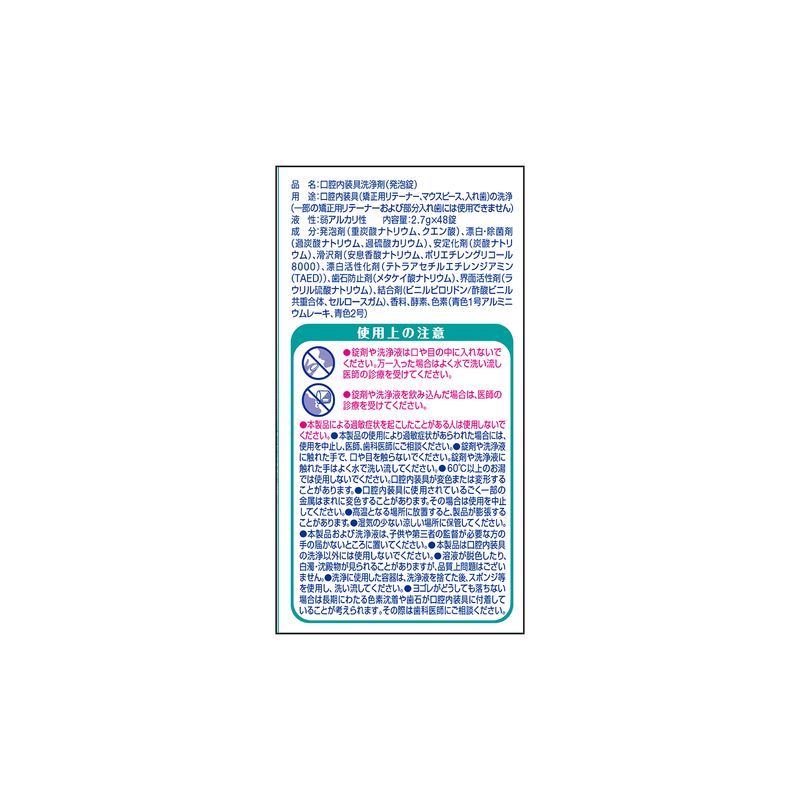 マウスピース・矯正用リテーナーの洗浄に。研磨剤不配合だから傷つけずに洗浄。カビの一種+ニオイの原因菌まで5分で99.9%除菌。
