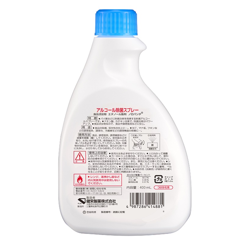 従来のアルコールでは効きにくい広範囲のウイルス・細菌に対応したキッチン用除菌アルコールスプレーです。