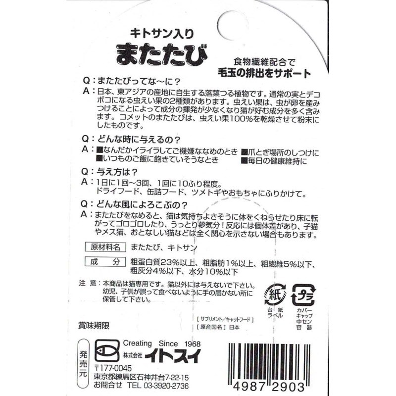 ・猫が好む成分を多く含む「虫えい果」100%で作ったまたたびパウダーです。