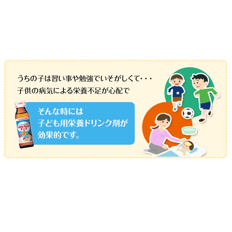 各種ビタミン、カルシウム、タウリンなどお子さまの発育に必要な栄養成分を配合したミニドリンク剤です。