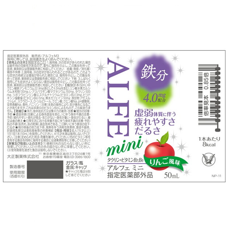 1本に1日あたりの不足分の鉄分4.0mgを配合しています。