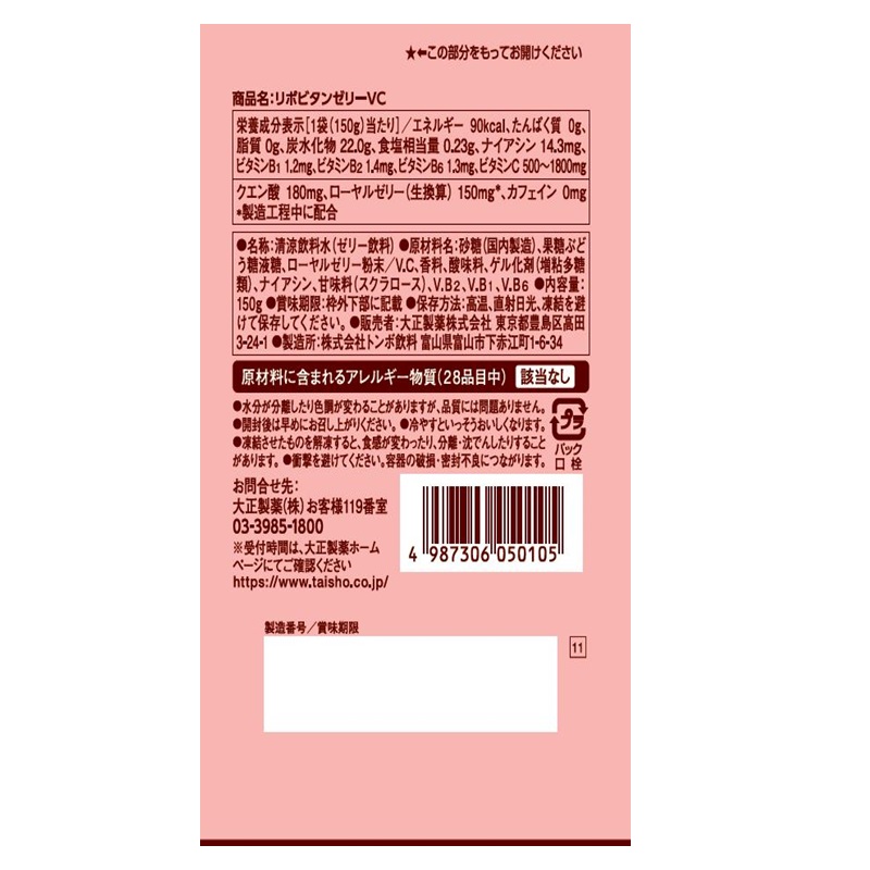 ビタミンC500~1800mg、ローヤルゼリー150mg、ビタミンB1・B2・B6、ナイアシンを一度に摂取できます。
