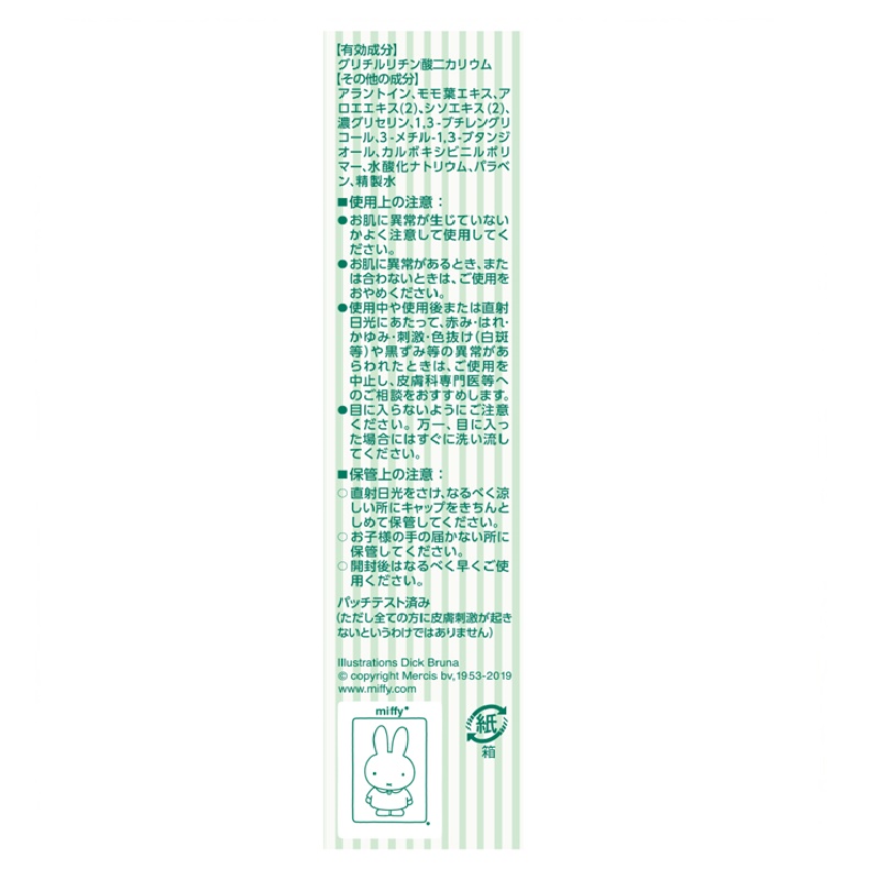 その他の成分・・・アラントイン、モモ葉エキス、アロエエキス(2)、シソエキス(2)、濃グリセリン、1.3‐ブチレングリコ