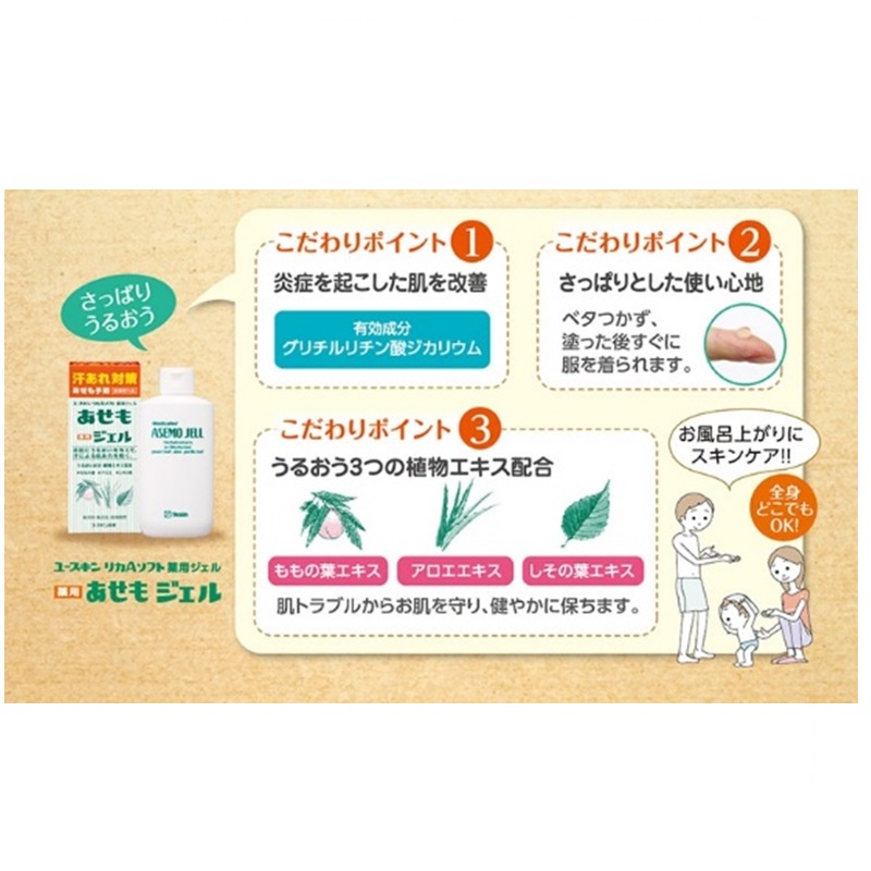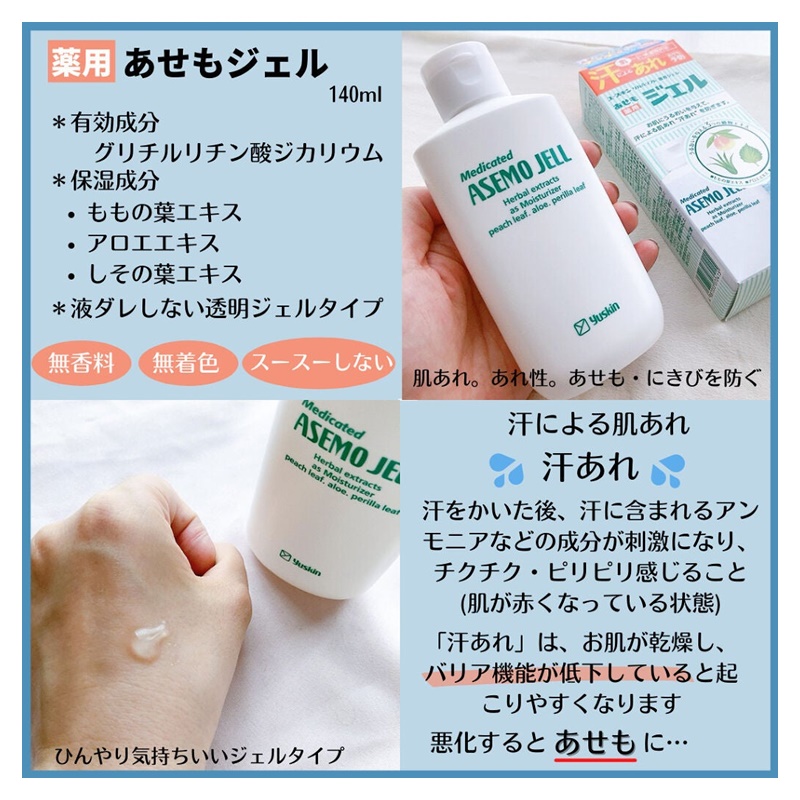 お風呂上がりにスキンケアお風呂上がりの清潔なお肌に薬用あせもジェルでしっかりうるおいを与え、「汗あれ」を防ぎます。