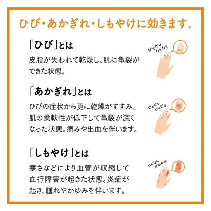4つの有効成分がひび・あかぎれ・しもやけ、手荒れを治す、ビタミンB2色の黄色いクリーム。