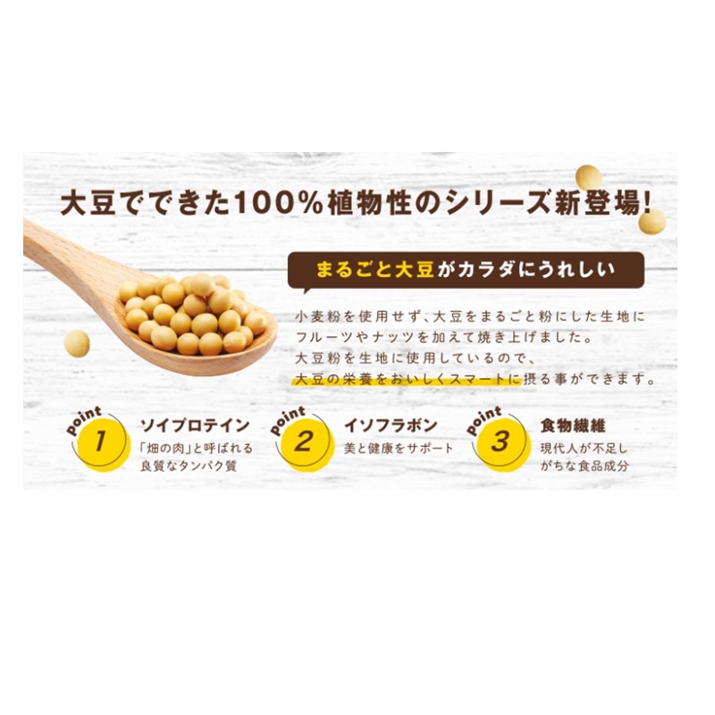 大豆には、植物性タンパク質、大豆イソフラボン、食物繊維など、身体にうれしい成分がぎっしり。