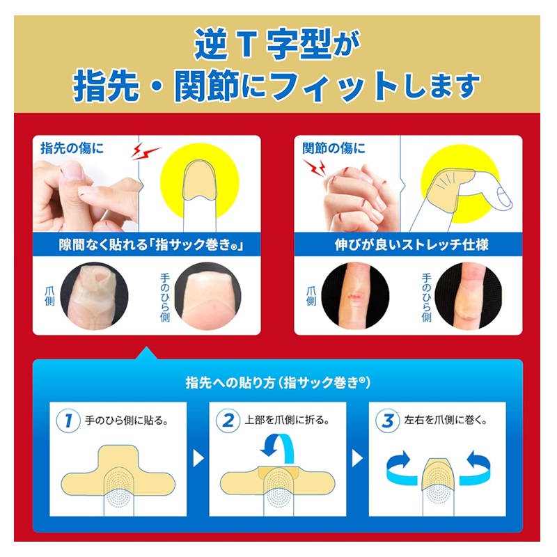 「指サック巻き」で、指先を隙間なくガードします。