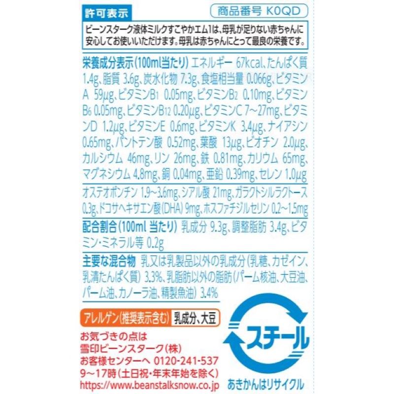 ・育児用粉ミルク「ビーンスターク すこやかM1」と同等の配合設計ですので、