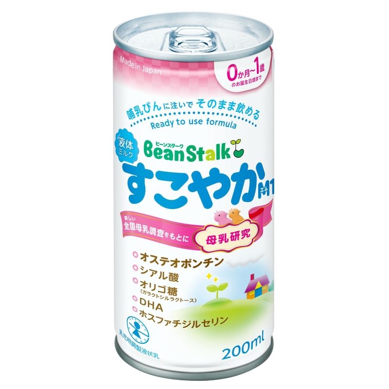 ビーンスターク液体ミルクすこやかエム1は、母乳が足りない赤ちゃんに安心してお使いいただけます。
