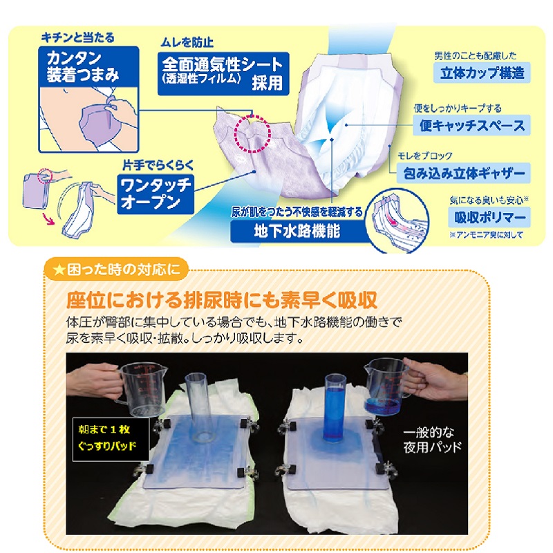 ●長時間でも安心の、たっぷり12回分の排尿量を吸収します。