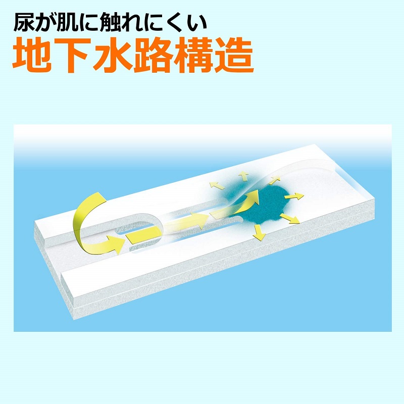 ●尿が肌をつたう不快感を軽減する地下水路機能。