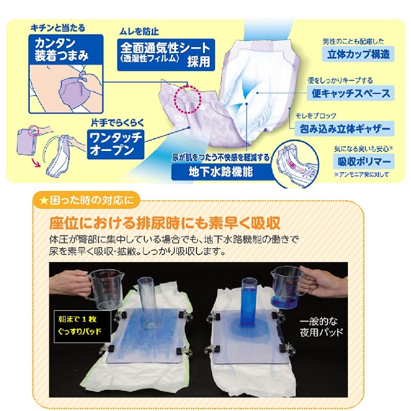 ●長時間でも安心の、たっぷり7回分の排尿量を吸収します。
