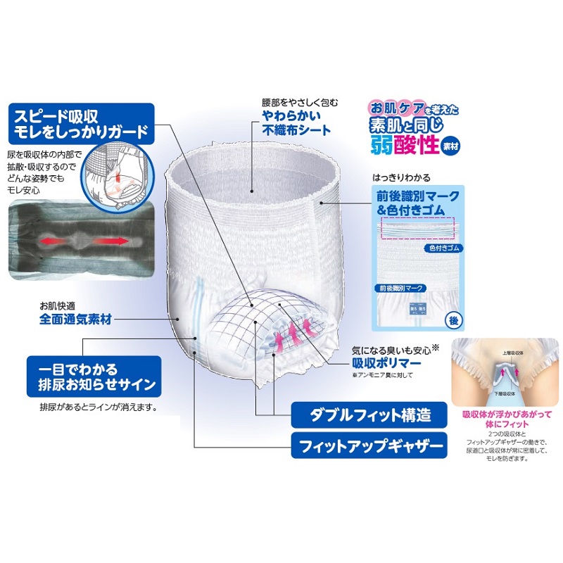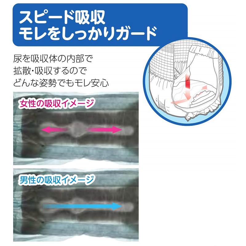 新改良の吸収体が尿を拡散・吸収させ、スピード吸収を実現。