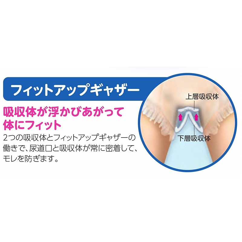 上下2層の吸収体(ダブルフィット構造)とフィットアップギャザーの効果で、
