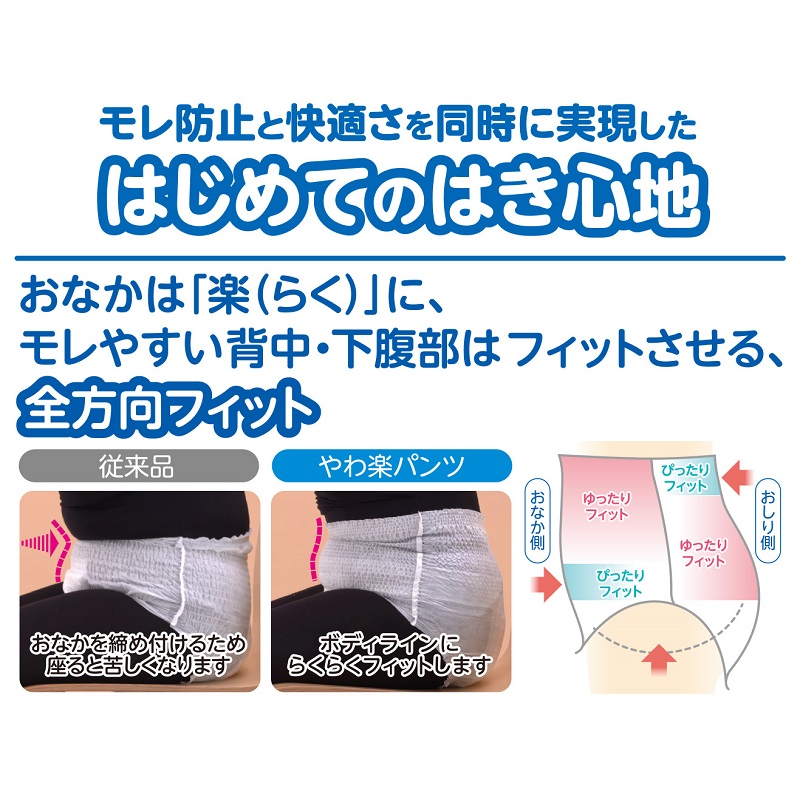 新開発の「全方向フィット」構造で、おなかは楽々なのにズレにくい。