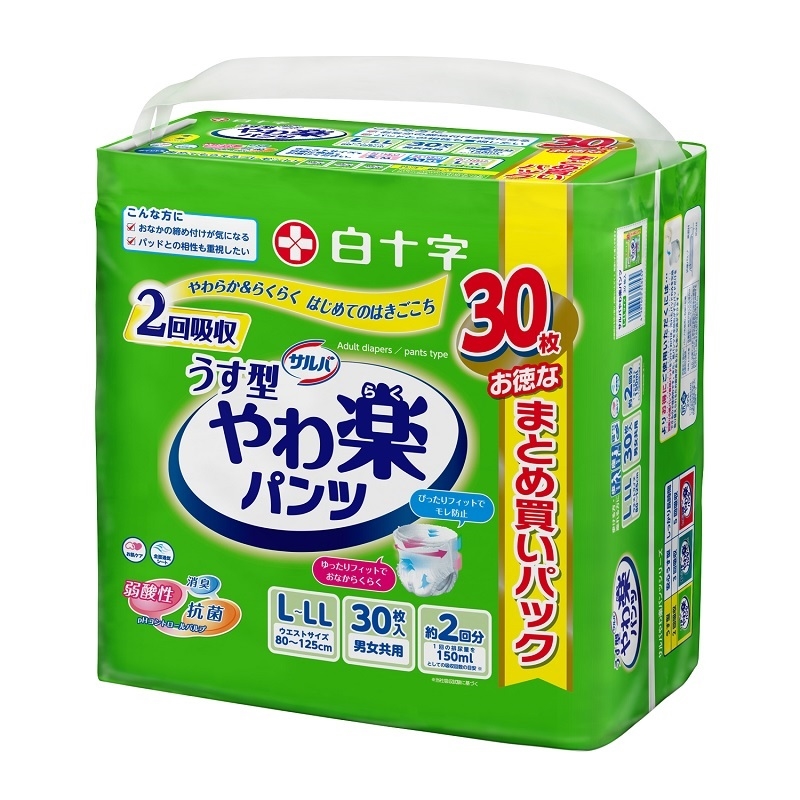 ●うす型なのに、排尿量約2回分の安心吸収!(1回の排尿量を150mlとして)。