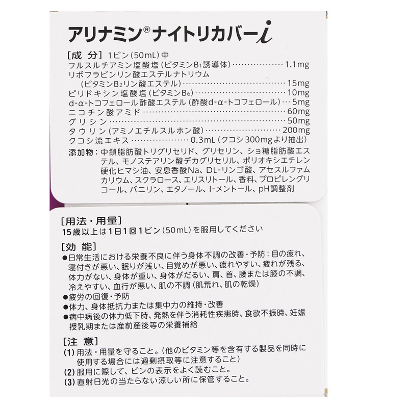 目の疲れに対する効果をより意識した処方で、抗疲労成分「フルスルチアミン」と目の症状に良いと言われる生薬「クコシ」を配合。
