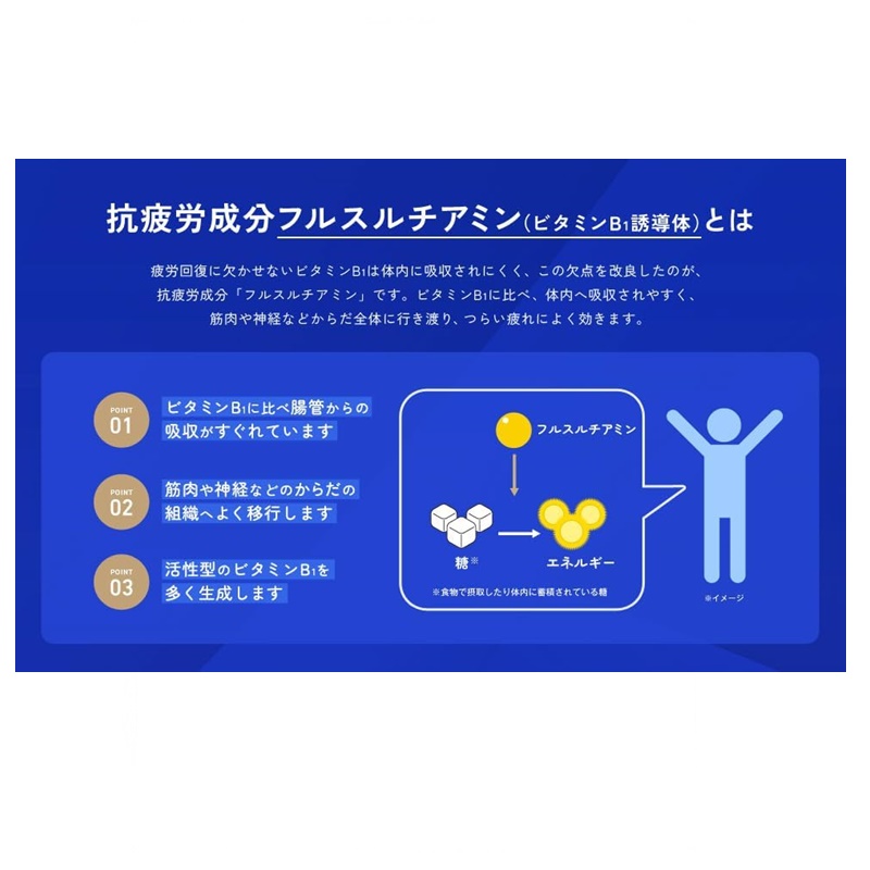 抗疲労成分「フルスルチアミン」とグリシンを配合。疲労と睡眠の質両方にアプローチします。