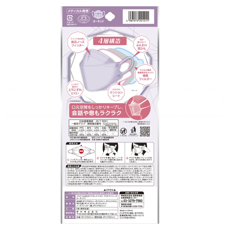 ウイルス飛沫、細菌飛沫、花粉、PM2.5をカット。