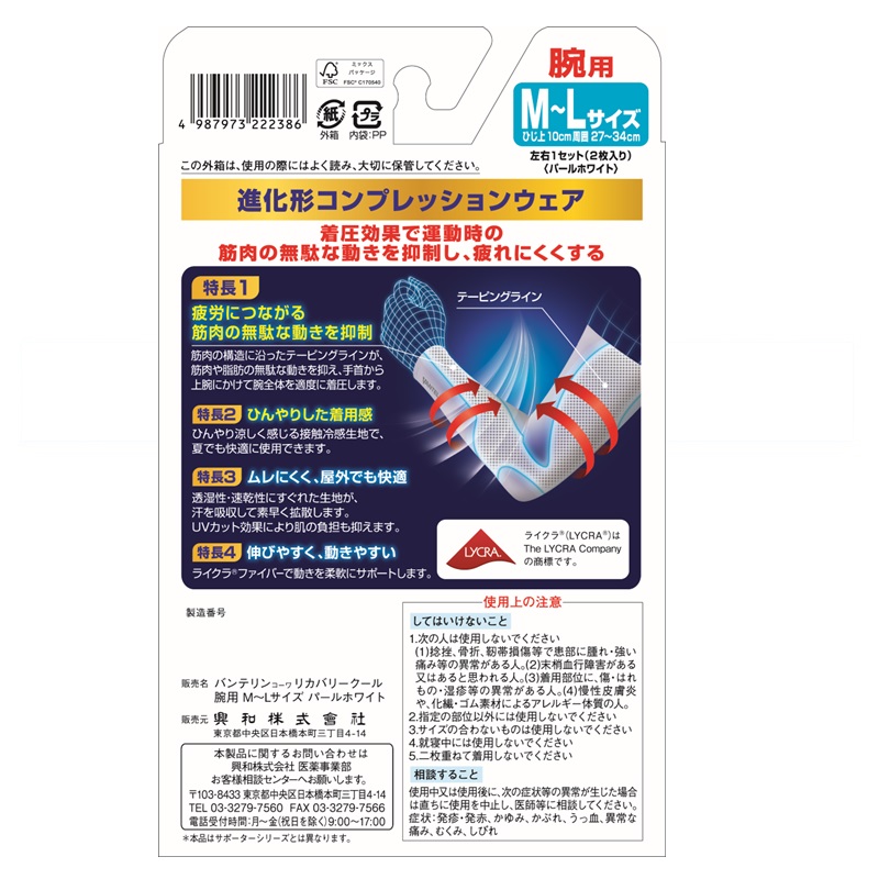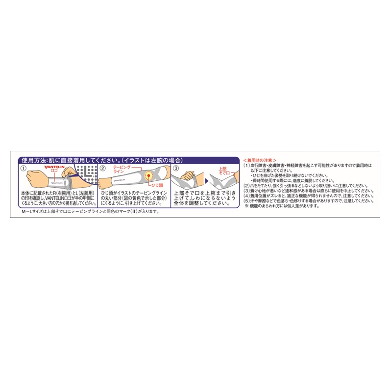 筋肉構造に沿ったテーピングラインが、筋肉や脂肪の無駄な動きを抑え、手首から上腕にかけて腕全体を適度に着圧します。