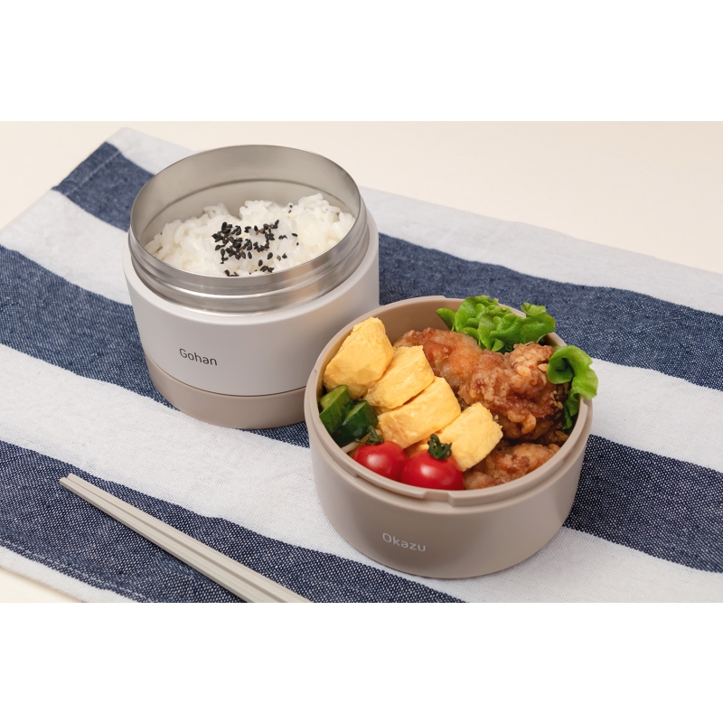 ごはん容器は真空二重構造で、ごはん容器・おかず容器ともにパッキン付き。