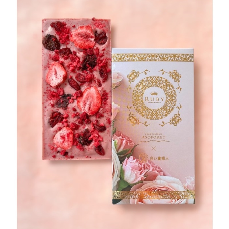 フルーティな酸味とベリーのような香りが特徴の「ルビーチョコ」にドライフルーツ等を華やかにトッピング。