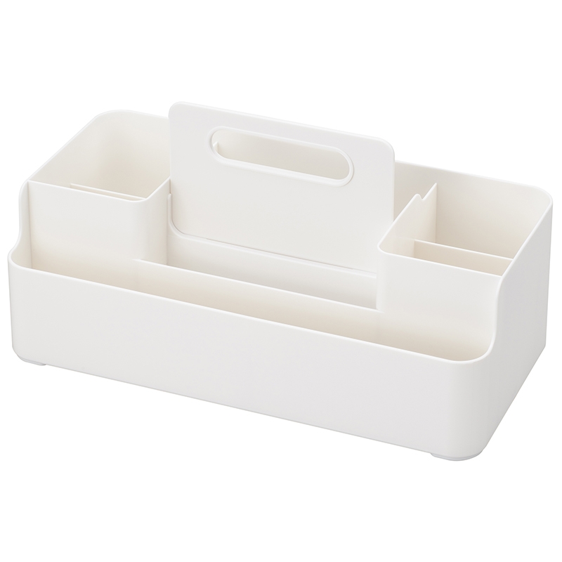 散らかりがちなデスク周りの文房具屋、小物が多い化粧品の整理整頓に最適。持ち運ぶときに取り出せる持ち手付きです。