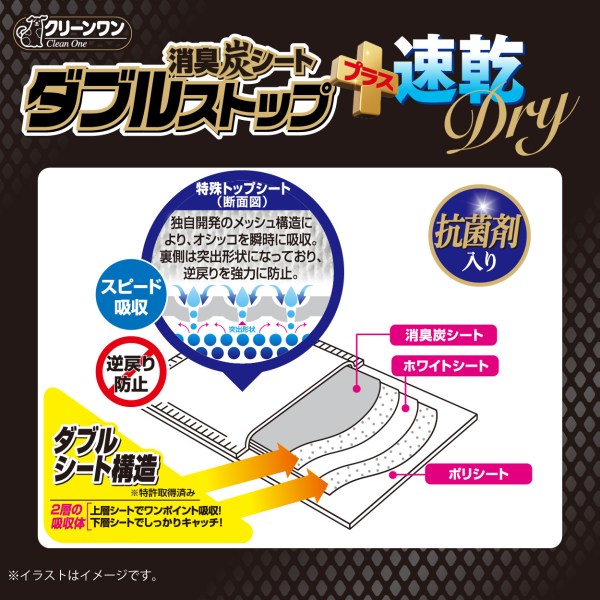 特殊トップシートとダブルシート構造により、 速乾ドライ吸収で濡れ足ストップ!
