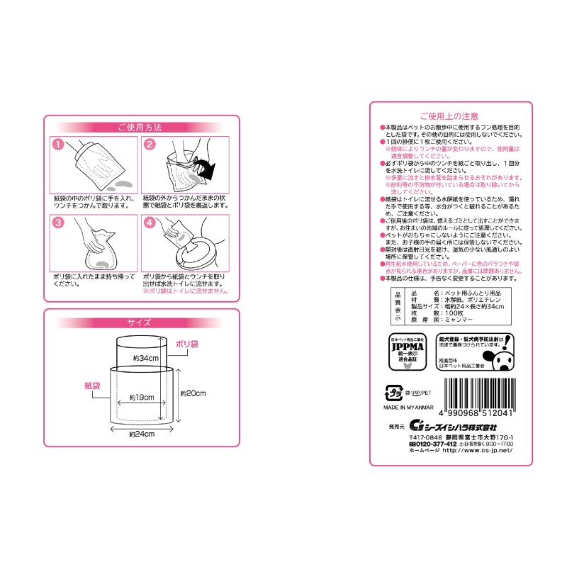 ・本品は、おさんぽマナーをサポートするウンチ処理袋です。