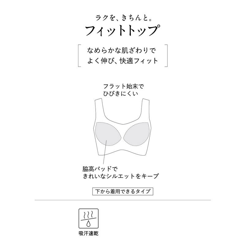 フラット始末で肌あたりがやさしく快適ならくちんフィットトップ。