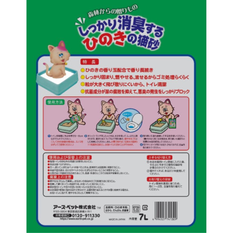 アース・ペット しっかり消臭するひのきの猫砂 7L