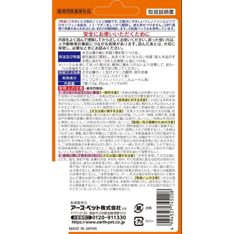 ・首につけるだけでノミの駆除に役立ち、蚊を寄せ付けにくくなります。