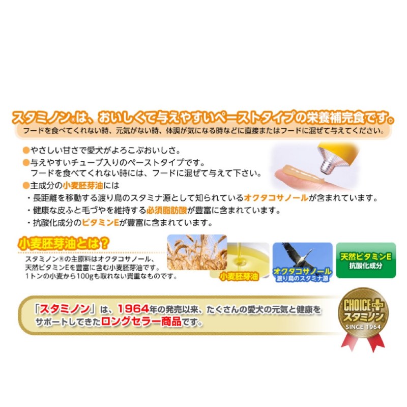 ・主成分には小麦胚芽油を使用。渡り鳥のスタミナ源として知られるオクタコサノールが含まれています。