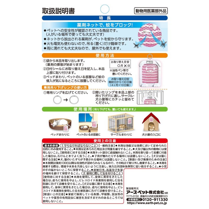・ペットへの安全性が確認されている商品です。(人がいる場所で使っても大丈夫です)