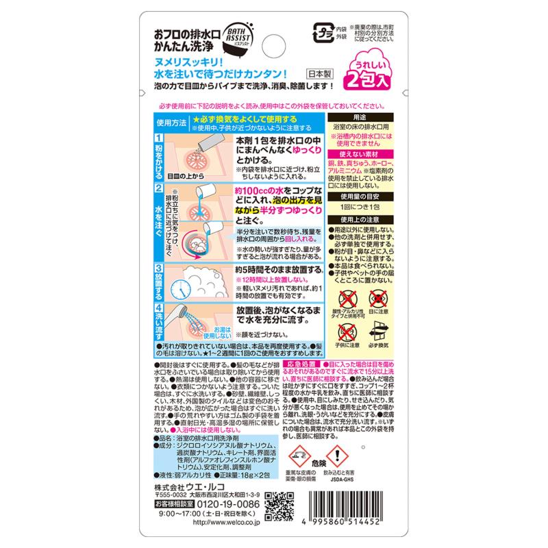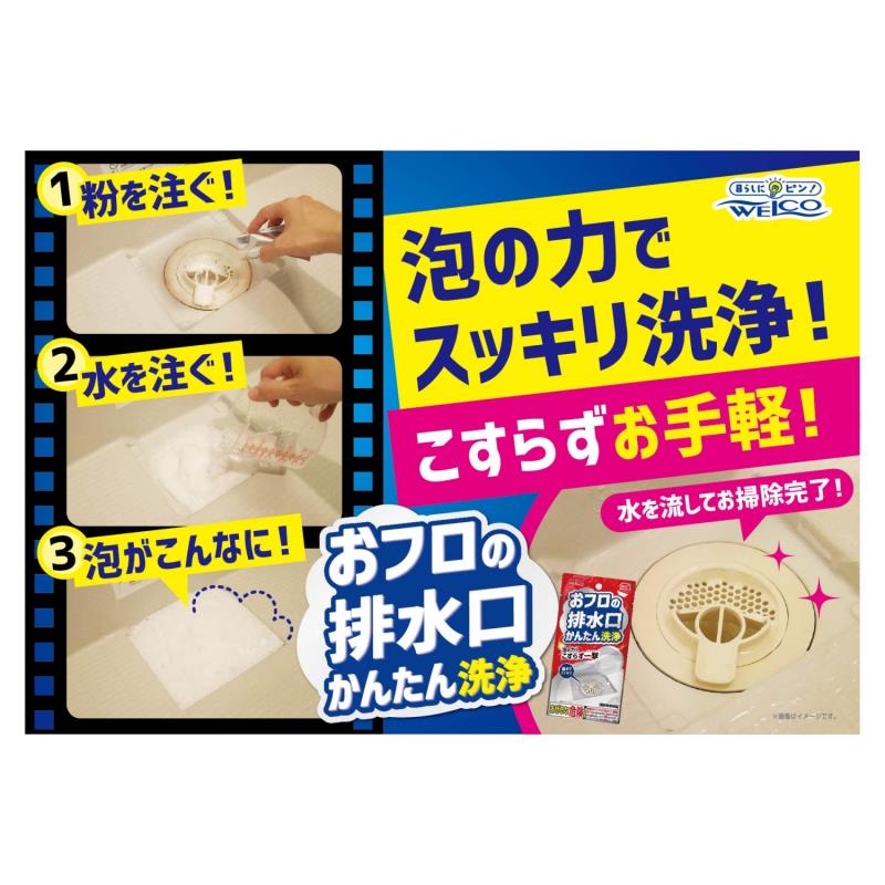 ●お風呂の排水口に1回1包入れるだけで、イヤなヌメリ汚れなども、こすり洗いなくキレイになります。