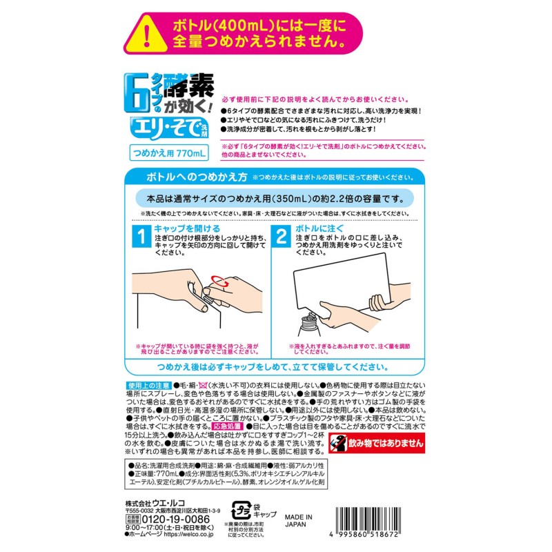 ●6タイプの酵素配合でさまざまな汚れに対応し、高い洗浄力を実現。