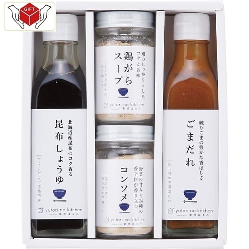 ●ごまだれ245g、昆布しょうゆ235g、顆粒コンソメ70g、顆粒鶏がらスープ65g