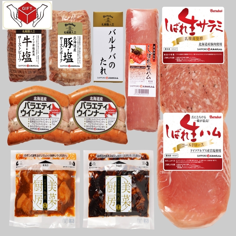 しばれ生ハム冊取り200g、ローストポーク170g、ローストビーフ150g、バルナバのたれ60g、