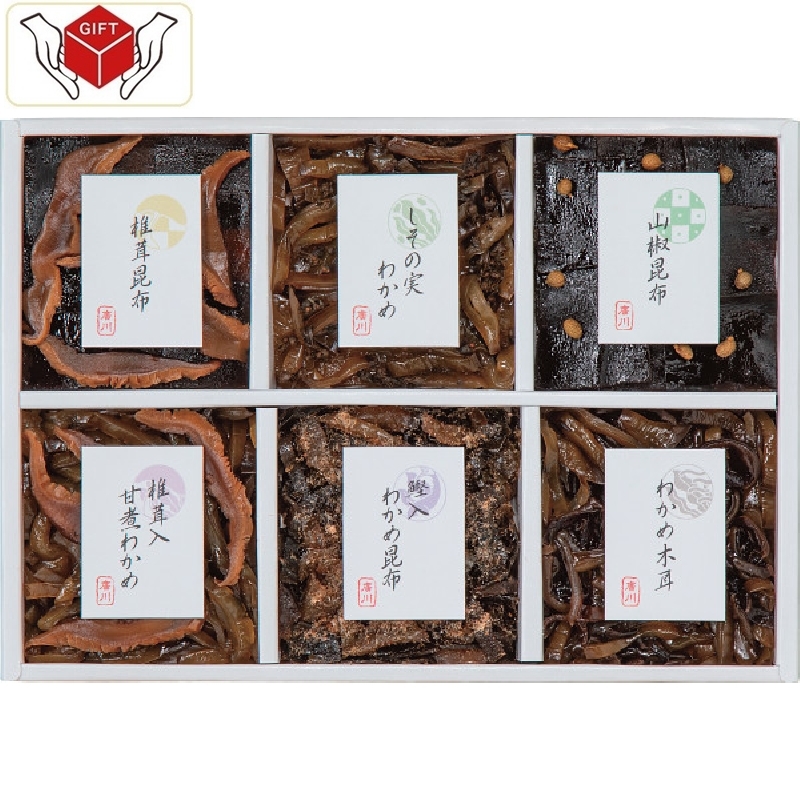 椎茸昆布・しその実わかめ・山椒昆布・椎茸入甘煮わかめ 各45g×各1
