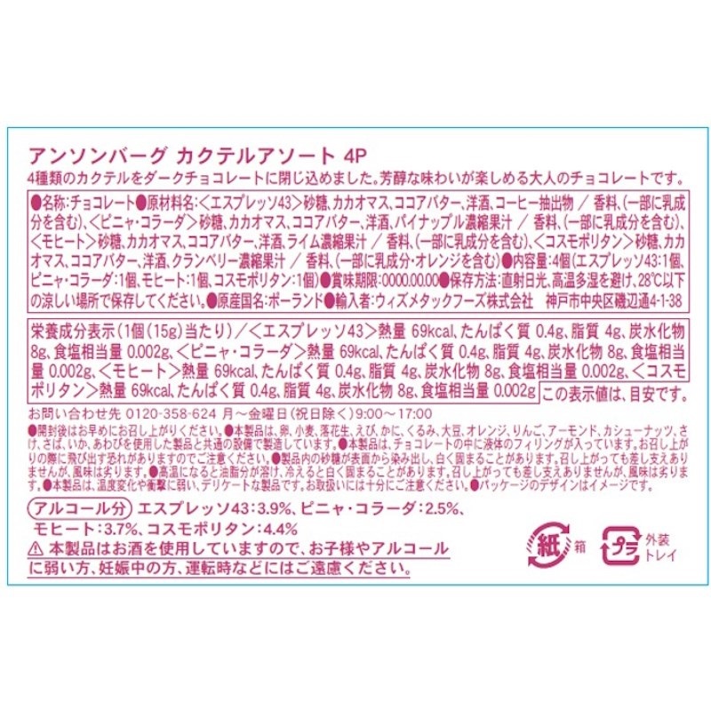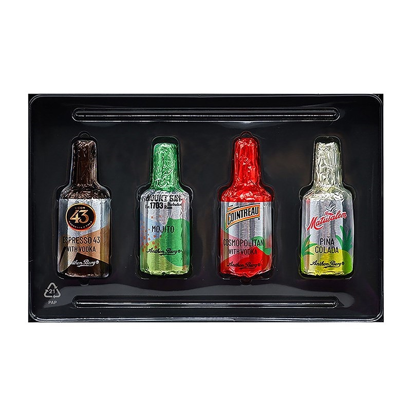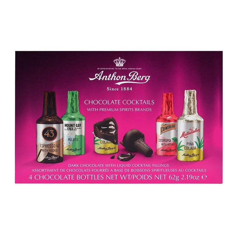 世界の銘酒を使ったカクテル入りダークチョコレート4個/箱。