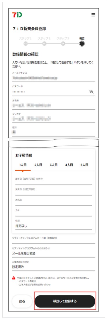 「登録情報の確認」画面にて入力情報を確認の上「確認して登録する」を押下します。