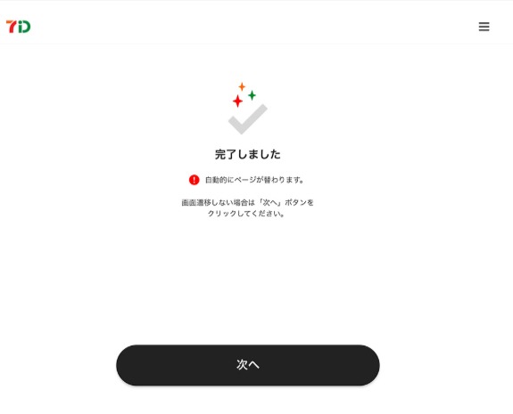 認証成功画面が表示されたあと、「nanacoポイントサービス登録内容確認」画面へ自動遷移します。