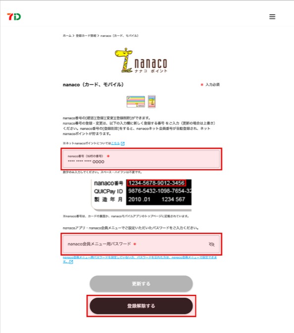 登録済みのnanacoカードまたはnanacoモバイルの登録を削除される方