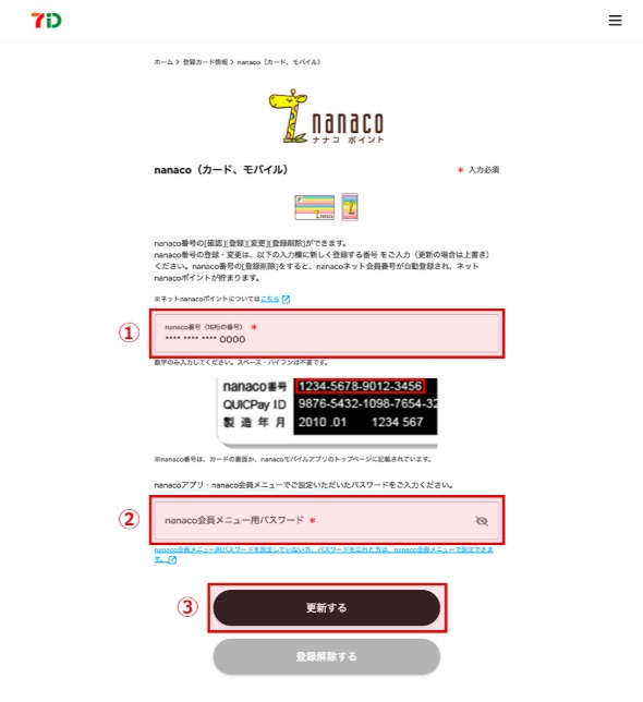 11. nanaco番号・ポイントを確認し登録する