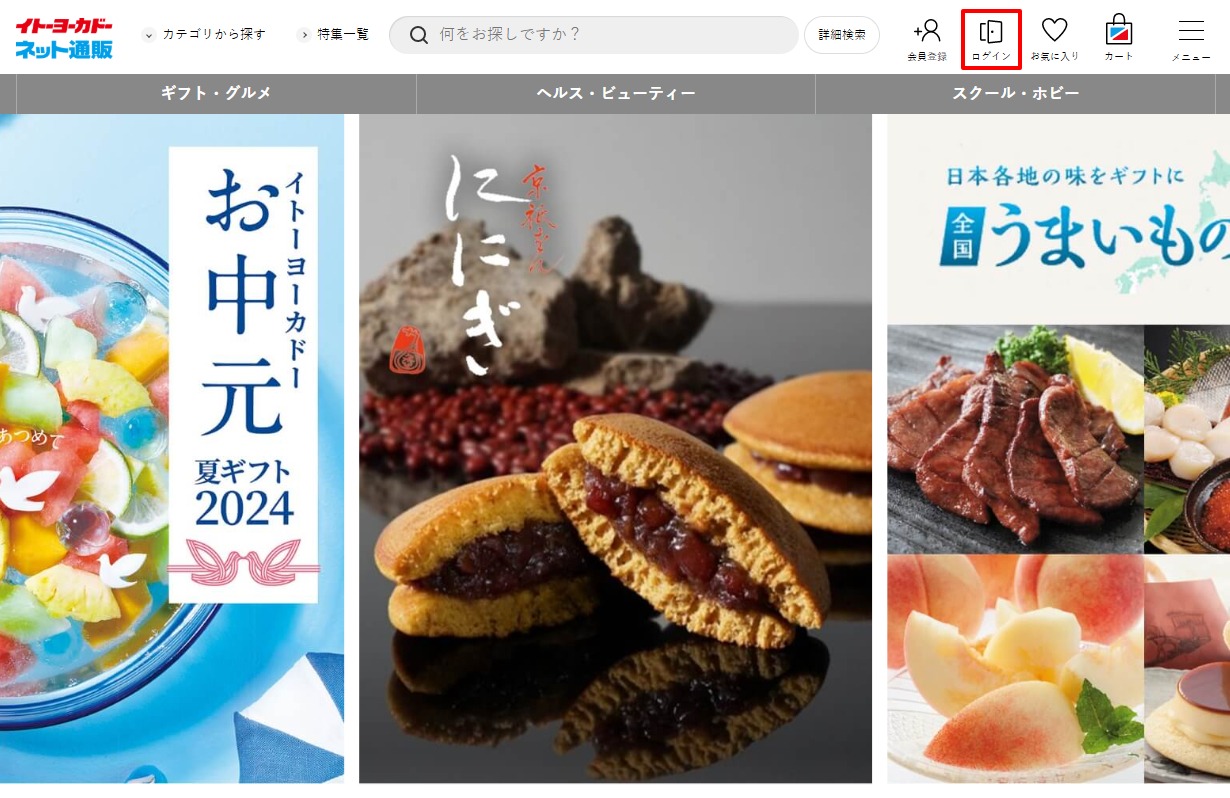 画面上部の「ログイン」を押下します。