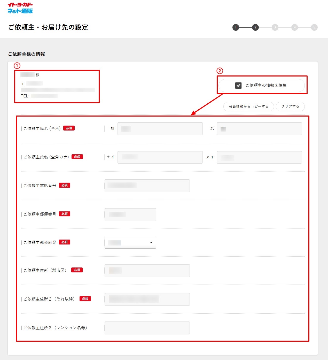 前画面で設定した「ご依頼主様」「お届け先様」が表示されます。