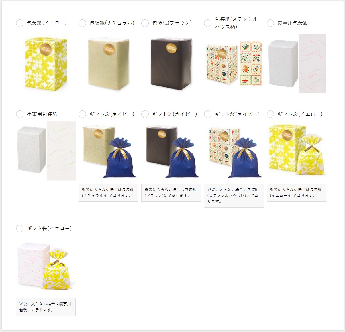 包装紙・ギフト袋は下記のものからお選びいただけます。