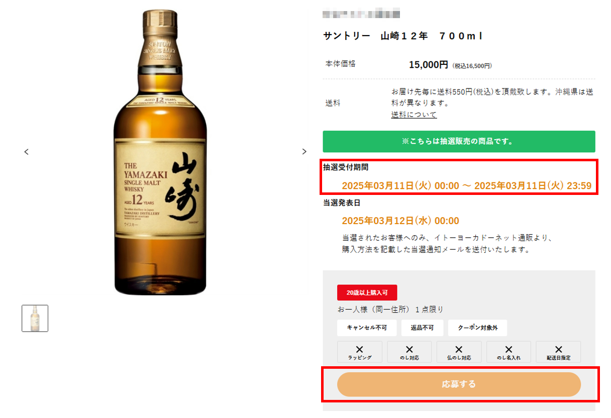 抽選販売はイトーヨーカドーネット通販サイトの抽選専用ページから応募できます。