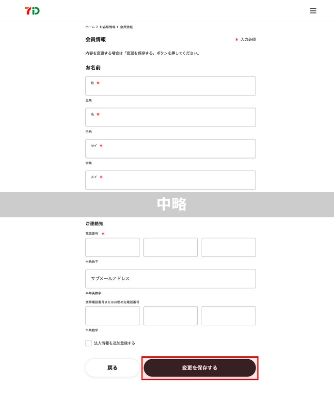 お客様情報画面が表示されますので、現在の登録内容をご確認ください。登録内容を変更したい場合は、変更後に「変更を保存する」を押してください。〈ご注意〉 生年月日は変更できません。