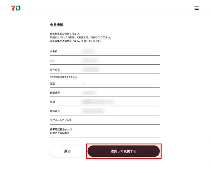 会員情報画面で変更結果を確認し、問題がなければ「確認して変更する」を押下します。